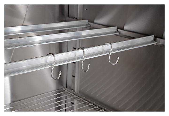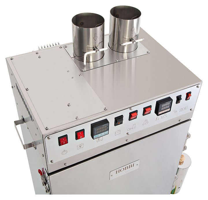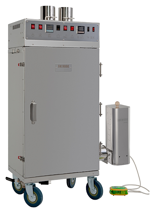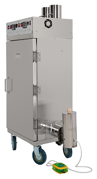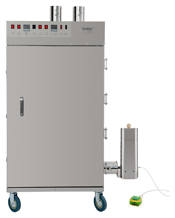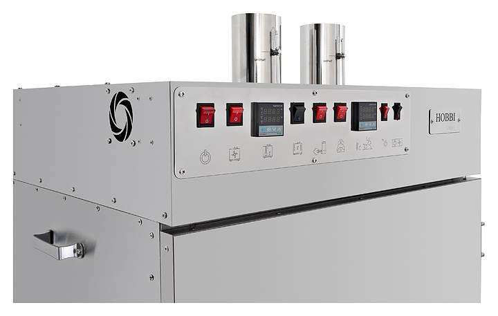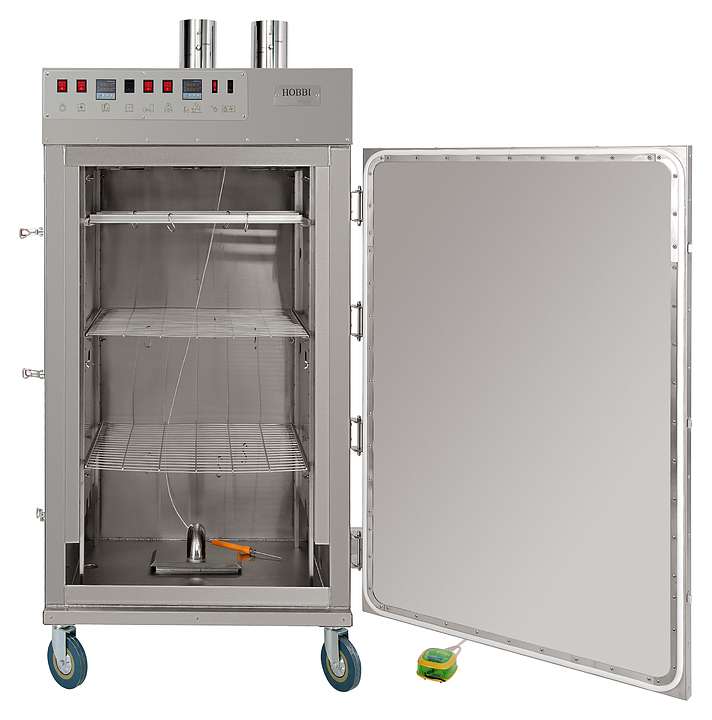Термокамера Hobbi Smoke 90 предназначена для приготовления мяса, рыбы, птицы и овощей методом холодного или горячего копчения на предприятиях общественного питания и торговли. Модель оснащена дымогенератором и отверстием для выхода дыма. Корпус выполнен из нержавеющей стали AISI 430 и AISI 304. В комплект поставки входят вешала из алюминия, крючки и решетки. Дымогенератор в комплект поставки не входит и приобретается отдельно. Минимальный заказ: 3 шт. Особенности: