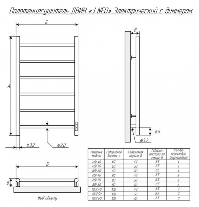 Полотенцесушитель электрический Двин 4657763758578 J neo 60/40 1"-1/2" К с диммером и таймером, белый
