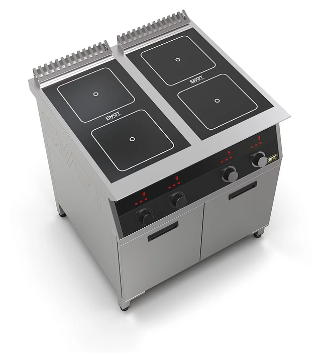 Индукционная плита SMART INDUCTION C94-35B предназначена для приготовления и быстрого разогрева блюд на предприятиях общественного питания и торговли. Модель оснащена электронно-механической панелью управления с индикацией, съемным жировым фильтром для отделения жира и влаги от поступающего внутрь аппарата воздуха и регулируемыми по высоте ножками. Корпус, столешница и воздуховод выполнены из нержавеющей стали AISI430, рабочая поверхность - из стеклокерамики, передняя панель имеет стойкое полимерное покрытие черного цвета. Особенности: