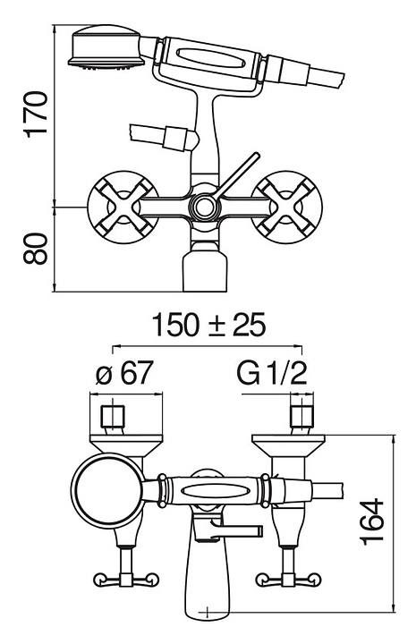 Смеситель для ванны и душа настенный NOBILI CARLOS PRIMERO CP210BR