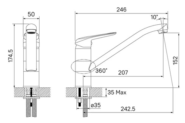 Смеситель IDDIS Male MALBL00i05 выполнен в стиле модерн и используется для подачи и смешивания горячей и холодной воды. Модель устанавливается на кухонную мойку, оснащена эргономичным рычагом, характеризующимся плавной работой и поворотным изливом. Однозахватный тип управления позволяет очень быстро и плавно регулировать подачу воды одной рукой. Изделие выполнено из высококачественной латуни, которая отличается прочностью, долговечностью и устойчивостью к перепадам температур, с устойчивым к износу и эрозии комбинированным покрытием, благодаря которому не теряет презентабельный вид, гибкая подводка - из нетоксичной EPDM резины в оплетке из нержавеющей стали. Особенности: