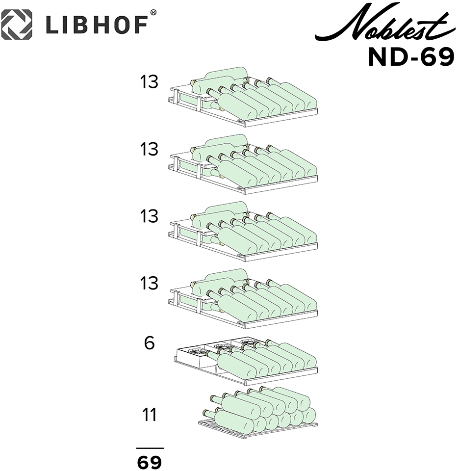 Винный шкаф Libhof Noblest NR-69 предназначен для хранения при оптимальных условиях бутилированного вина различных сортов в барах, ресторанах, специализированных магазинах, подсобных складских помещениях, а также в домашних условиях. Модель оснащена холодильной камерой с 4 демонстрационными полками, полкой с ванночкой и укороченной полкой, распашной дверью на внутренних петлях с замком, прозрачным обзорным стеклом и сенсорной панелью управления с дисплеем. Корпус выполнен из американского дуба, полки - из массива бука. В комплект поставки входят емкость для долива воды и механический замок с комплектом ключей. Особенности: