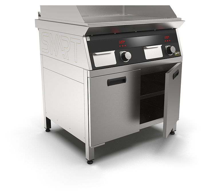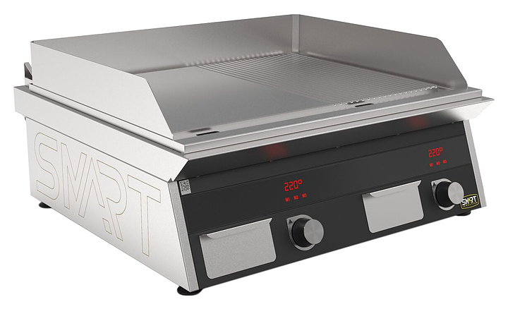 Индукционный гриль SMART INDUCTION G94-PRB предназначен для приготовления мясных, рыбных и овощных блюд на предприятиях общественного питания и торговли. Модель оснащена электронно-механической панелью управления с цифровой индикацией и сенсорными кнопками, съемным жировым фильтром для отделения жира и влаги от поступающего внутрь аппарата воздуха, ящиком для сбора жира и регулируемыми по высоте ножками. Корпус и столешница выполнены из нержавеющей стали AISI430, рабочая поверхность - из нержавеющей стали, передняя панель имеет стойкое полимерное покрытие черного цвета. Особенности: