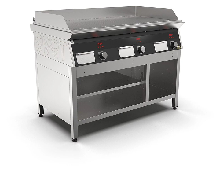 Индукционный гриль SMART INDUCTION G76-RB предназначен для приготовления мясных, рыбных и овощных блюд на предприятиях общественного питания и торговли. Модель оснащена электронно-механической панелью управления с цифровой индикацией и сенсорными кнопками, съемным жировым фильтром для отделения жира и влаги от поступающего внутрь аппарата воздуха, ящиком для сбора жира и регулируемыми по высоте ножками. Корпус и столешница выполнены из нержавеющей стали AISI430, рабочая поверхность - из нержавеющей стали, передняя панель имеет стойкое полимерное покрытие черного цвета. Особенности: