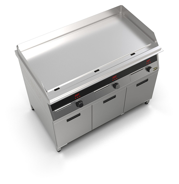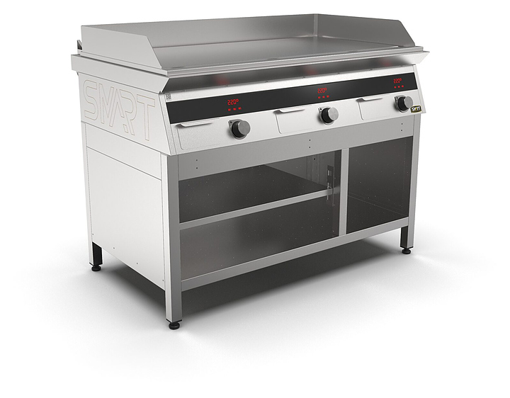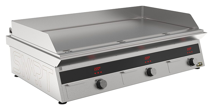 Индукционный гриль SMART INDUCTION G96-PN предназначен для приготовления мясных, рыбных и овощных блюд на предприятиях общественного питания и торговли. Модель оснащена электронно-механической панелью управления с цифровой индикацией и сенсорными кнопками, съемным жировым фильтром для отделения жира и влаги от поступающего внутрь аппарата воздуха, ящиком для сбора жира и регулируемыми по высоте ножками. Корпус и столешница выполнены из нержавеющей стали AISI430, рабочая поверхность и передняя панель - из нержавеющей стали. Особенности: