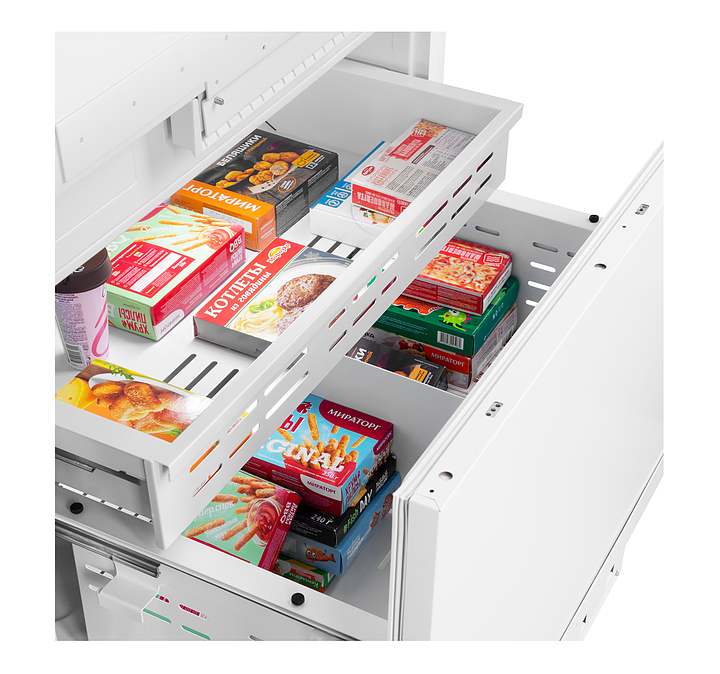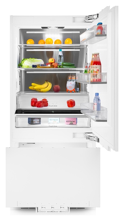Холодильник Maunfeld MBF212NFW1предназначен для охлаждения, заморозки, кратковременного и длительного хранения пищевых продуктов и напитков в домашних условиях. Модель оснащена морозильной камерой снизу с выдвижной «французской» дверью и холодильной – сверху с правосторонней распашной дверью на перенавешиваемых петлях, цокольной решеткой, кабелем питания с вилкой, расположенными внизу холодильной камеры сенсорной панелью управления и дисплеем индикации с белой светодиодной подсветкой. Корпус выполнен из металла с антикоррозийным покрытием белого цвета, внутренняя облицовка – из белого пластика, плоские полки – из безопасного закаленного стекла с металлическими бортиками, ящики и дверные полки холодильной камеры – из прочного прозрачного полимера, упаковка – из гофрокартона и полимерной пленки.