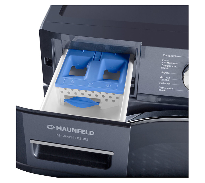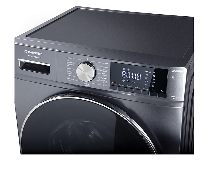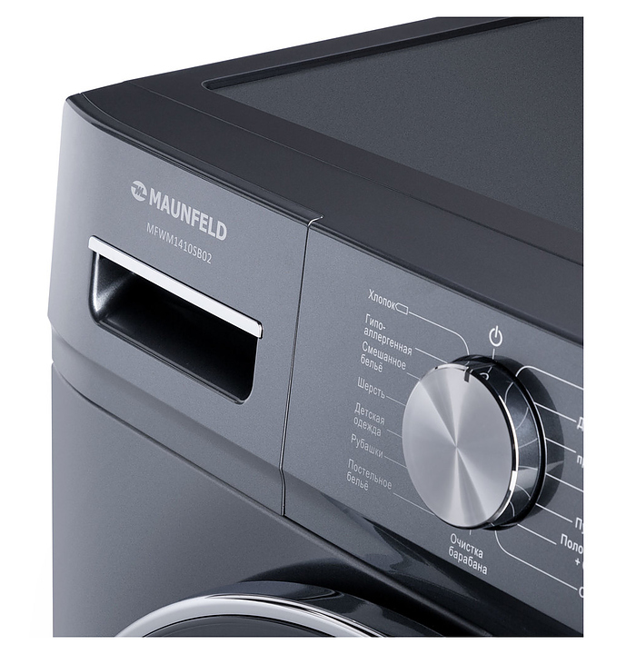 Стиральная машина Maunfeld MFWM1410SB02 используется в домашних условиях, а также небольших прачечных для стирки, полоскания и отжима белья, одежды и тканей. Модель оснащена фронтальным люком со смотровым окном, сливным шлангом, кабелем питания с вилкой, электромеханической панелью управления с поворотным переключателем программ, сенсорными клавишами, сигнальными лампами и цифровым дисплеем с белой светодиодной подсветкой индикации. Корпус выполнен из металла с поверхностью цвета черной нержавеющей стали, внешняя крышка двери люка – из стекла с полупрозрачной дымчатой тонировкой и декоративной окантовкой серебристого цвета, барабан – из высококачественной нержавеющей стали.