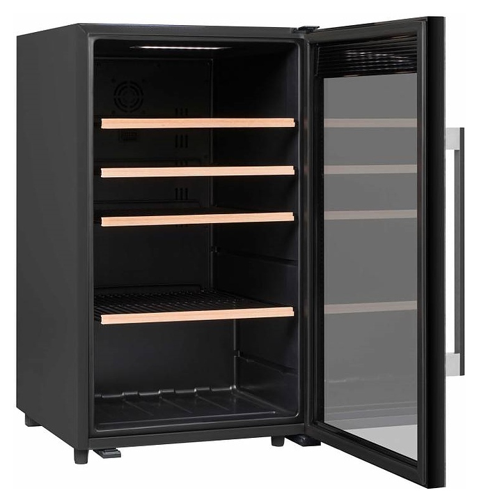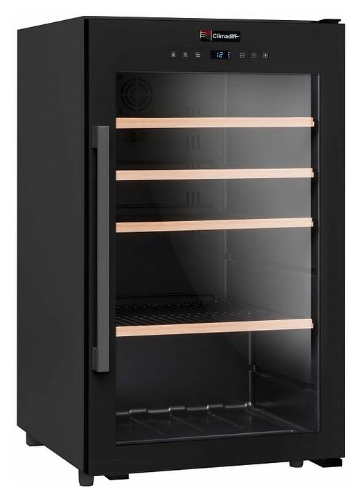 Винный шкаф Climadiff CS63B1 предназначен для хранения вина при определенном уровне влажности и температуры в ресторанах, специализированных магазинах, отелях, подсобных складских помещениях, в частных домах или квартирах. Модель оснащена цифровым дисплеем и белым светодиодным освещением с выключателем. Полки выполнены из проволоки с фасадом из бука, дверь - из двойного серого стеклопакета. Особенности: