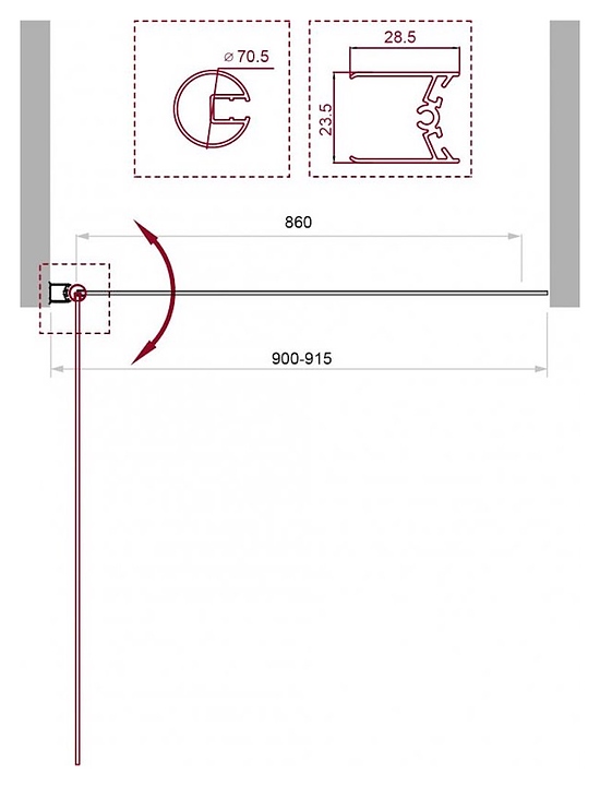Шторка на ванну BelBagno UNO-V-1-90/150-C-NERO прозрачное стекло