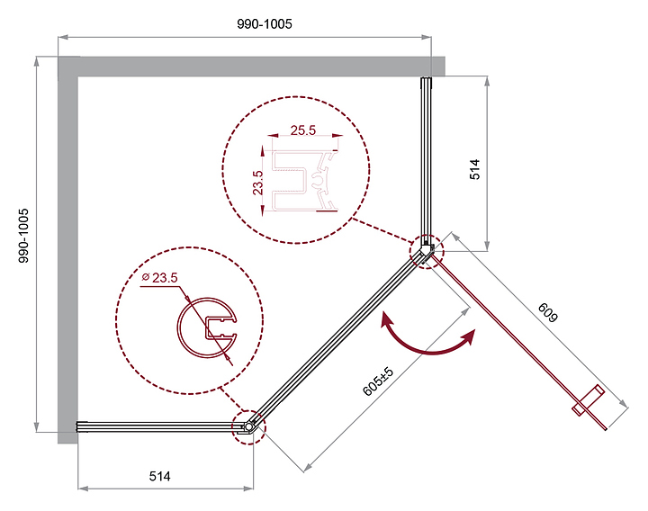 Уголок душевой BelBagno UNO-195-P-1-100-C-NERO 100x100x195 см, стекло прозрачное