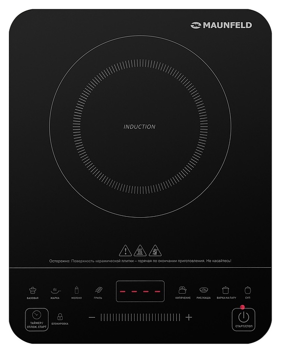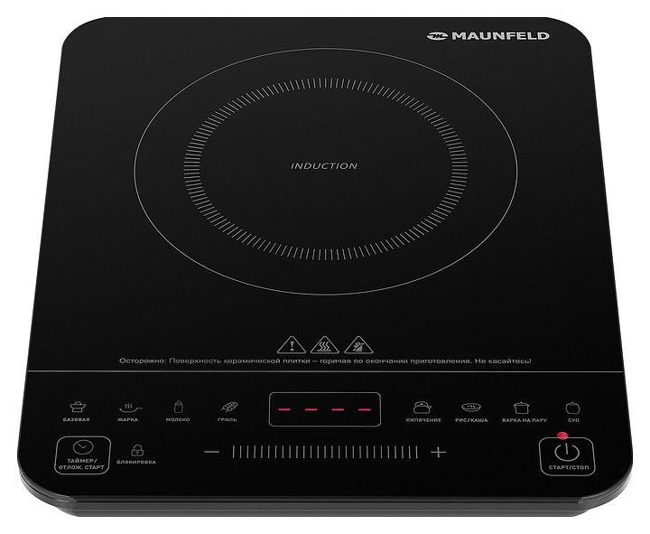 Настольная электрическая индукционная плита Maunfeld EVI.F291-BK предназначена для приготовления и быстрого разогрева блюд в отелях, офисах и домашних условиях. Принцип работы основан на непосредственном нагреве металлической посуды создаваемыми высокочастотным магнитным полем индуцированными вихревыми токами. Модель оснащена 1 варочной зоной, кабелем питания с вилкой, сенсорной панелью управления с сигнальными лампами и цифровым дисплеем с индикацией красного цвета. Корпус выполнен из стали с антикоррозийным покрытием, рабочая поверхность – из стеклокерамики черного цвета. В комплект поставки входят инструкция по эксплуатации и гарантийный талон. Особенности: