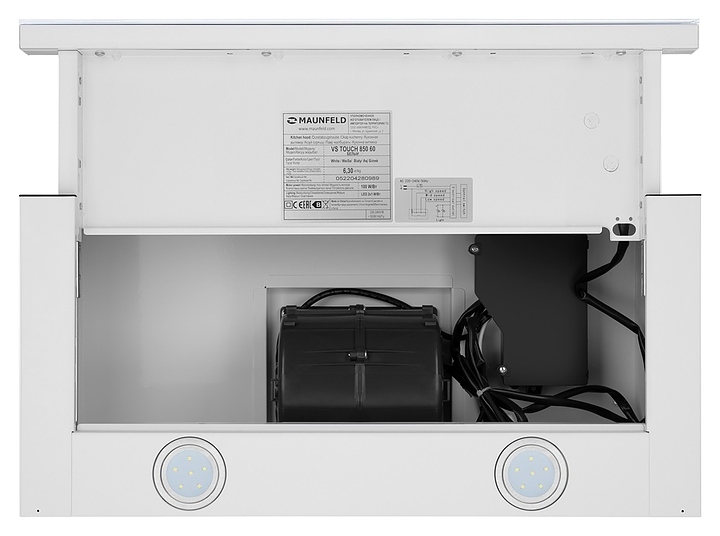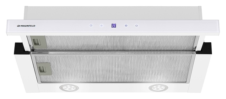 Встраиваемая кухонная вытяжка Maunfeld VS Touch 850 60 предназначена для очистки воздуха от продуктов горения, копоти и запахов в процессе приготовления пищи путем принудительной вентиляции в домашних условиях. Модель оснащена электродвигателем Fime (Италия), 2 круглыми светодиодными светильниками, сенсорной панелью управления с голубой подсветкой клавиш и цифровым дисплеем. Корпус выполнен из высококачественной нержавеющей стали, наружная часть с термостойким покрытием белого цвета, фронтальная панель – из закаленного стекла с глянцевой поверхностью, фильтр – из алюминия. В комплект поставки входят набор монтажных креплений, адаптер на 120 мм, антивозвратный клапан и инструкция по эксплуатации. Особенности: