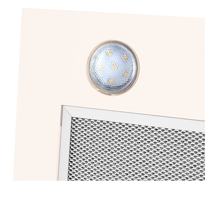 Встраиваемая кухонная вытяжка Maunfeld Crosby Singl 5028 предназначена для очистки воздуха от продуктов горения, копоти и запахов в процессе приготовления пищи путем принудительной вентиляции в домашних условиях. Модель оснащена электродвигателем Fime (Италия), кабелем питания с вилкой, 2 круглыми светодиодными светильниками и кнопочной панелью управления. Корпус выполнен из высококачественной нержавеющей стали с покрытием наружной части термостойкой эмалью бежевого оттенка, фильтр – из алюминия, фурнитура серебристого цвета. В комплект поставки входят набор монтажных креплений, адаптер на 150 мм, антивозвратный клапан и инструкция по эксплуатации. Особенности: