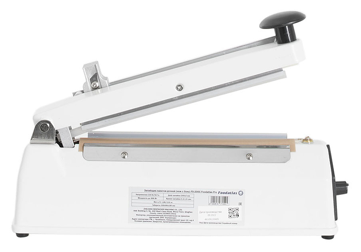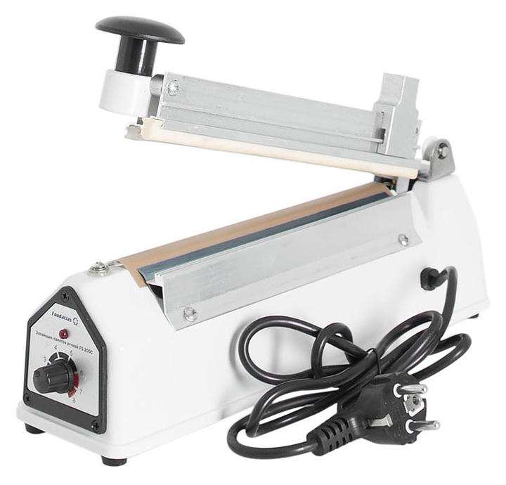 Ручной запайщик пакетов Foodatlas FS-200C используется на предприятиях пищевой промышленности, общественного питания и торговли для упаковки пищевых продуктов и продукции легкой промышленности в готовые пакеты из различных термопластичных пленок. Модель оснащена световым индикатором нагрева, регулятором времени нагрева и ножом для отрезания излишков пленки. Корпус выполнен из окрашенного металла, спаивающий элемент - никелевая пластина. Особенности:
