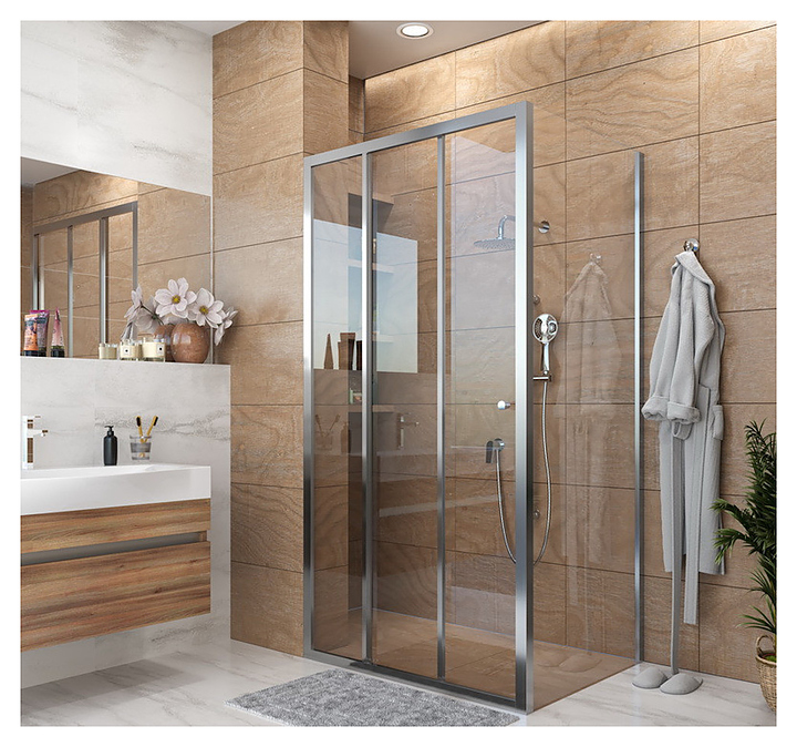 Душевой уголок Grossman Falcon GR-D110-P90 предназначен для использования в ванных комнатах. Благодаря угловой конструкции модель можно вписать даже в ванные комнаты небольшой площади. Передняя стенка уголка состоит из одного неподвижного полотна и двух подвижных створок на роликах. Профиль выполнен анодированного алюминия. Поддон в комплект поставки не входит и приобретается отдельно. Особенности:
