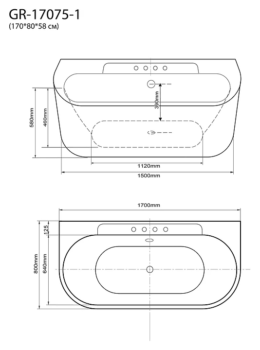 Ванна Grossman GR-17075-1 170x80 см, белая, акрил