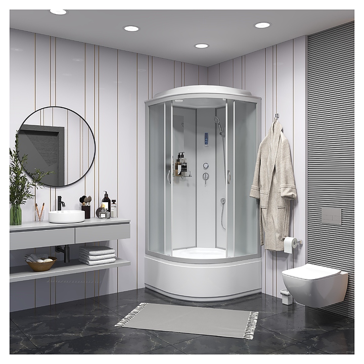 Душевая кабина Niagara NG-2308-14P предназначена для использования в ванных комнатах. Благодаря угловой конструкции и поддону в форме четверти круга модель можно вписать даже в ванные комнаты небольшой площади. Антискользящее покрытие и сиденье обеспечивают максимальный комфорт и безопасность при приеме душа. Кабина оснащена 2-х секционными раздвижными дверцами, крышей, верхним душем, радио, освещением, зеркалом и полочкой для размещения мыльных принадлежностей. Полотно дверей и задние стенки выполнены из прочного закаленного стекла, профиль - из алюминия, который отличается устойчивостью к коррозии, долговечностью и износостойкостью, поддон - из ABS-пластика. Особенности: