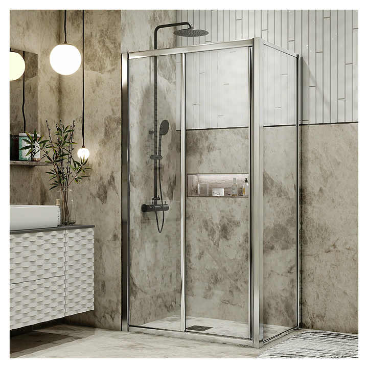 Душевой уголок Grossman Alba GR-1080 предназначен для использования в ванных комнатах. Благодаря угловой конструкции модель можно вписать даже в ванные комнаты небольшой площади. Модель оснащена 2 неподвижными секциями и раздвижной дверью на двойных металлических роликах. Профиль выполнен анодированного алюминия. Поддон в комплект поставки не входит и приобретается отдельно. Особенности:
