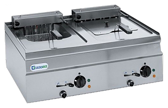 Фритюрница Tecnoinox FR70E/6/0 серии Tecno60 предназначена для приготовления блюд в большом объёме масла на предприятиях общественного питания и торговли. Модель оснащена нагревательными элементами и термостатом для предотвращения перегрева. Оборудование изготовлено из нержавеющей стали AISI 304 и может быть расположено на подставке у стены или как центральный остров. В комплект поставки входят 2 корзины с крышками. Особенности: