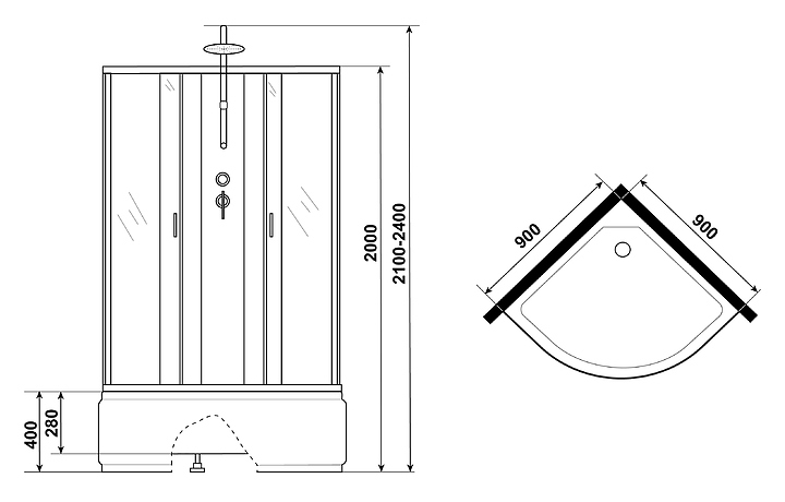 Кабина душевая Niagara NG-6508-14BKT 90х90х210 см