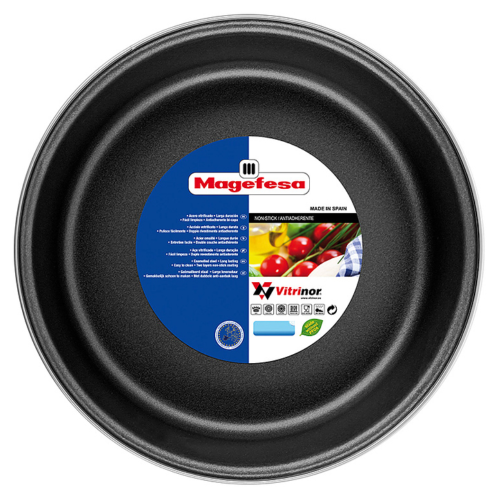 Круглая форма Vitrinor Praga 26 используется на предприятиях общественного питания и торговли, а также в домашних условиях для приготовления широкого спектра блюд в духовых шкафах и на любых типах варочных поверхностей, включая индукционные. Изделие выполнено из стали с двухслойным антипригарным покрытием, не содержащим PFOA, внешнее покрытие - двухслойная стеклоэмаль, обожженная при температуре 820 °С, красного цвета. Особенности: