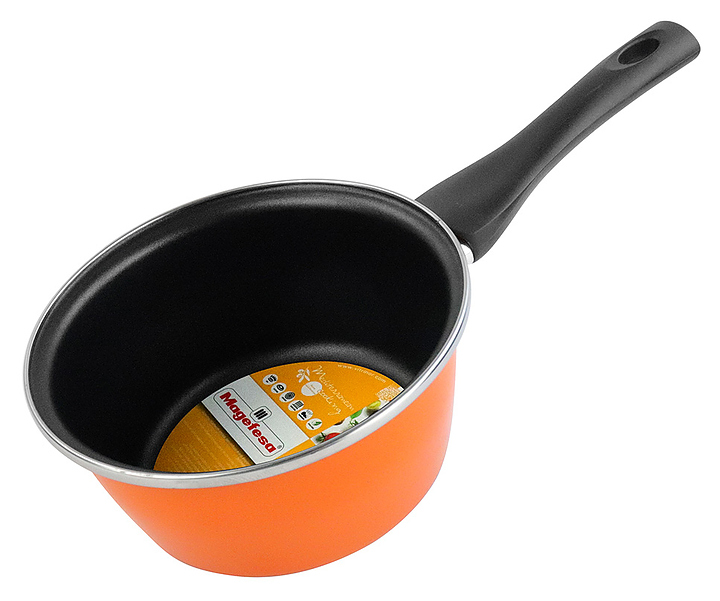 Ковш Vitrinor Valencia 21 14 используется на предприятиях общественного питания и торговли, а также в домашних условиях для приготовления широкого спектра блюд на любых типах варочных поверхностей, включая индукционные. Модель оснащена эргономичной ручкой с отверстием для подвешивания. Изделие выполнено из стали c ферромагнитными свойствами с двухслойным антипригарным покрытием, не содержащим PFOA, внешнее покрытие - двухслойная стеклоэмаль, обожженная при температуре 820 °С, оранжевого цвета, ручка - из бакелита. Особенности: