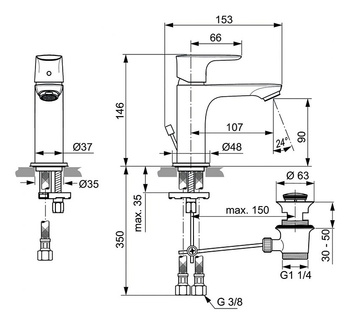 Смеситель для раковины Ideal Standard CONNECT AIR A7007AA предназначен для подачи горячей и холодной воды в ванных помещениях. Керамический картридж обеспечивает плавный ход рычага смесителя, контроль и точность при выборе напора и температуры воды. Модель оснащена системой облегченного монтажа. Аэратор насыщает водный поток воздухом и создает струю воды без брызг. Изделие выполнено из высококачественной латуни, которая отличается прочностью, долговечностью и устойчивостью к перепадам температур, донный клапан - из металла. В комплект поставки входит донный клапан. Дополнительные характеристики: