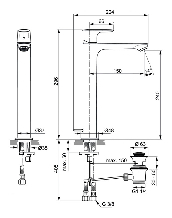 Смеситель для раковины Ideal Standard CONNECT AIR A7025AA предназначен для подачи горячей и холодной воды в ванных помещениях. Керамический картридж обеспечивает плавный ход рычага смесителя, контроль и точность при выборе напора и температуры воды. Модель оснащена системой облегченного монтажа. Аэратор насыщает водный поток воздухом и создает струю воды без брызг. Изделие выполнено из высококачественной латуни, которая отличается прочностью, долговечностью и устойчивостью к перепадам температур, донный клапан и рукоятка - из металла. В комплект поставки входит донный клапан. Дополнительные характеристики: