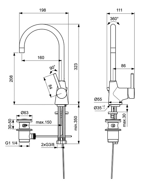 Смеситель для раковины Ideal Standard CERALINE BC195AA предназначен для подачи горячей и холодной воды в ванных помещениях. Керамический картридж обеспечивает плавный ход рычага смесителя, контроль и точность при выборе напора и температуры воды. Модель оснащена функцией ограничения максимальной температуры горячей воды для предотвращения ожогов и системой облегченного монтажа. Аэратор насыщает водный поток воздухом и создает струю воды без брызг. Изделие выполнено из высококачественной латуни, которая отличается прочностью, долговечностью и устойчивостью к перепадам температур, донный клапан - из металла, рукоятка и донный клапан - из металла. В комплект поставки входит донный клапан. Дополнительные характеристики: