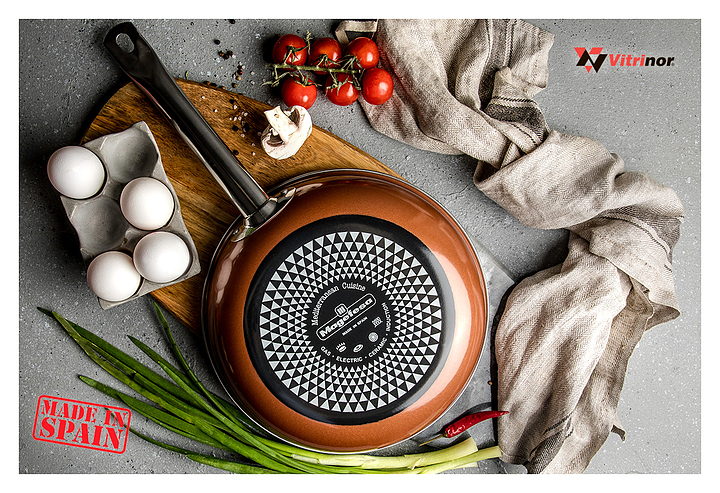 Сковорода Vitrinor Altays 24 используется на предприятиях общественного питания и торговли, а также в домашних условиях для приготовления широкого спектра блюд на любых типах варочных поверхностей, включая индукционные. Модель оснащена эргономичной ручкой с отверстием для подвешивания. Изделие выполнено из стали c ферромагнитными свойствами с трехслойным антипригарным покрытием Sparkle Diamond от Whitford, не содержащим PFOA, внешнее покрытие - двухслойная стеклоэмаль, обожженная при температуре 820 °С, медного цвета, ручка - из нержавеющей стали. Особенности: