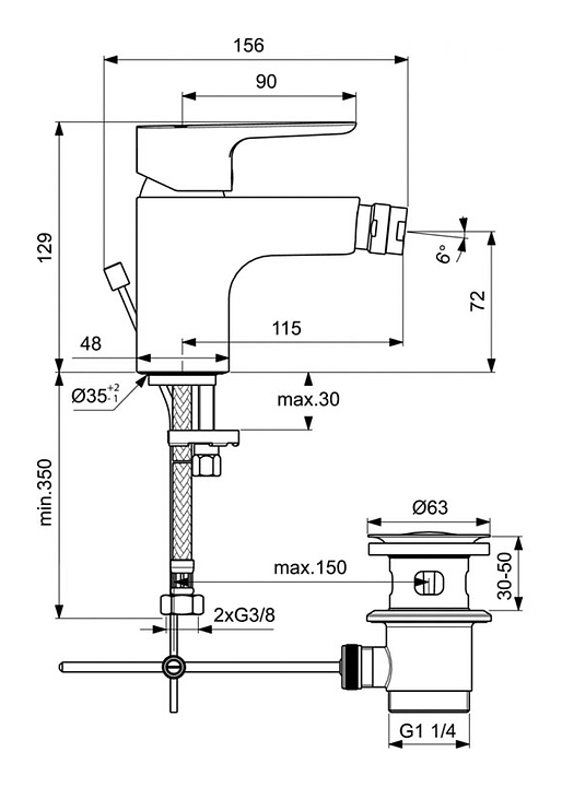 Смеситель для биде Ideal Standard CERAPLAN III SLIM BC626AA предназначен для подачи горячей и холодной воды в ванных помещениях . Модель является частью коллекции CERAPLAN, что позволяет выдержать дизайн кухни и ванной комнаты в едином стиле. Керамический картридж обеспечивает плавный ход рычага смесителя, контроль и точность при выборе напора и температуры воды. Аэратор на шаровом шарнире насыщает водный поток воздухом и создает направленную струю воды без брызг. Модель оснащена функцией ограничения максимальной температуры горячей воды для предотвращения ожогов и системой облегченного монтажа. Изделие выполнено из латуни, рукоятка и донный клапан - из металла. В комплект поставки входит донный клапан. Дополнительные характеристики: