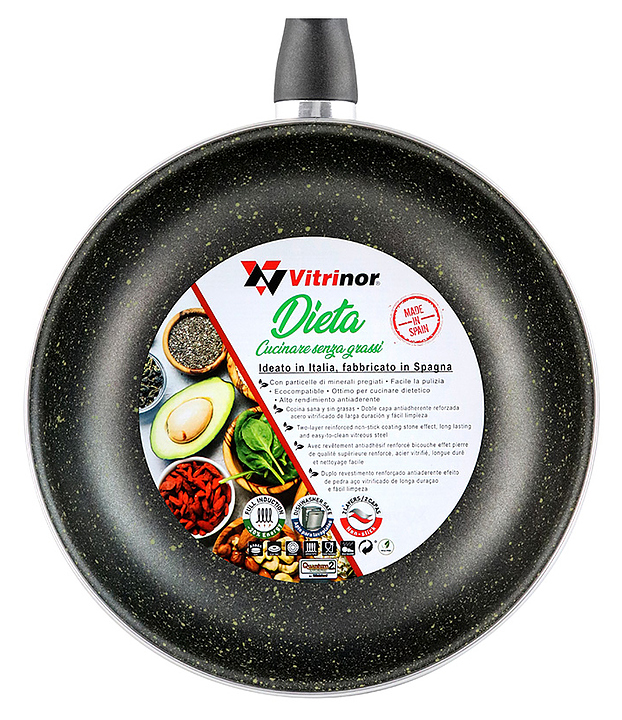 Сковорода Vitrinor Dieta 24 используется на предприятиях общественного питания и торговли, а также в домашних условиях для приготовления широкого спектра блюд на любых типах варочных поверхностей, включая индукционные. Модель оснащена эргономичной ручкой с отверстием для подвешивания. Изделие выполнено из стали c ферромагнитными свойствами с двухслойным антипригарным покрытием, не содержащим PFOA, внешнее покрытие - двухслойная стеклоэмаль, обожженная при температуре 820 °С, оливкового цвета, ручка - из бакелита. Особенности: