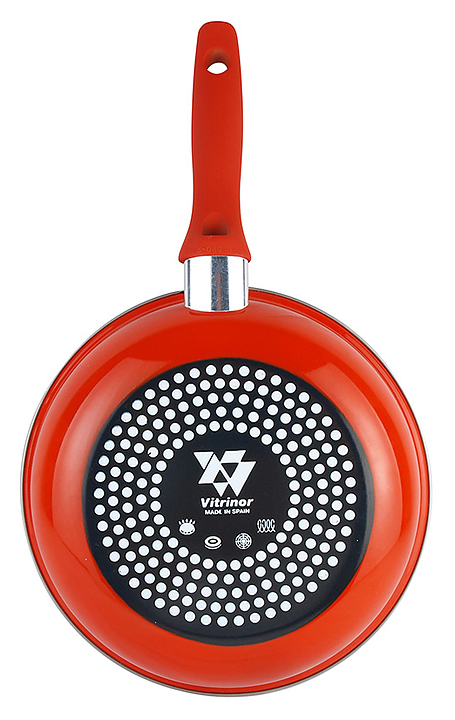 Сковорода Vitrinor Pomodoro 26 используется на предприятиях общественного питания и торговли, а также в домашних условиях для приготовления широкого спектра блюд на любых типах варочных поверхностей, включая индукционные. Модель оснащена эргономичной ручкой с отверстием для подвешивания. Изделие выполнено из стали c ферромагнитными свойствами с двухслойным антипригарным покрытием, не содержащим PFOA, внешнее покрытие - двухслойная стеклоэмаль, обожженная при температуре 820 °С, красного цвета, ручка - из бакелита. Особенности: