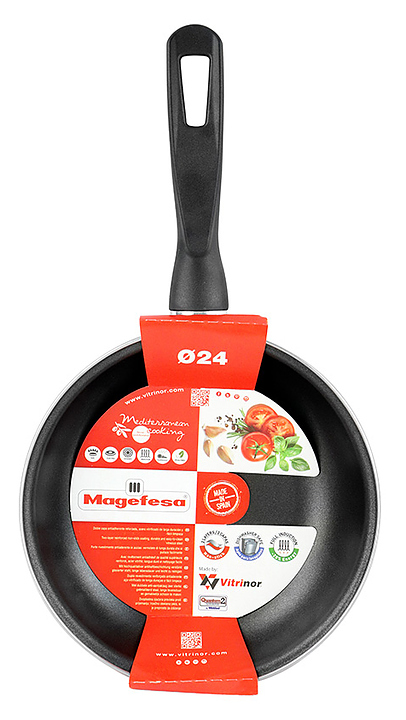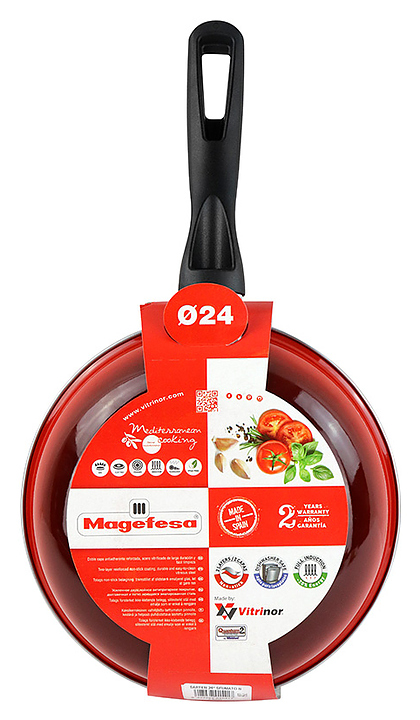 Сковорода Vitrinor Sfumatto 24 используется на предприятиях общественного питания и торговли, а также в домашних условиях для приготовления широкого спектра блюд на любых типах варочных поверхностей, включая индукционные. Модель оснащена эргономичной ручкой с отверстием для подвешивания. Изделие выполнено из стали c ферромагнитными свойствами с двухслойным антипригарным покрытием, не содержащим PFOA, внешнее покрытие - двухслойная стеклоэмаль, обожженная при температуре 820 °С, красного цвета, ручка - из бакелита. Особенности: