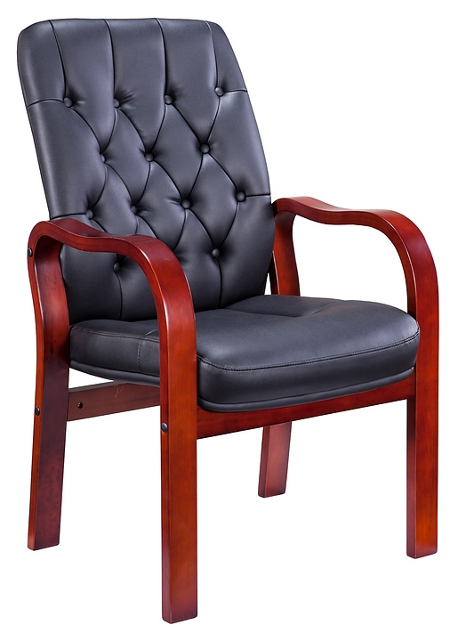 Кресло для посетителей Everprof Monaco Wood CF экокожа, черное
