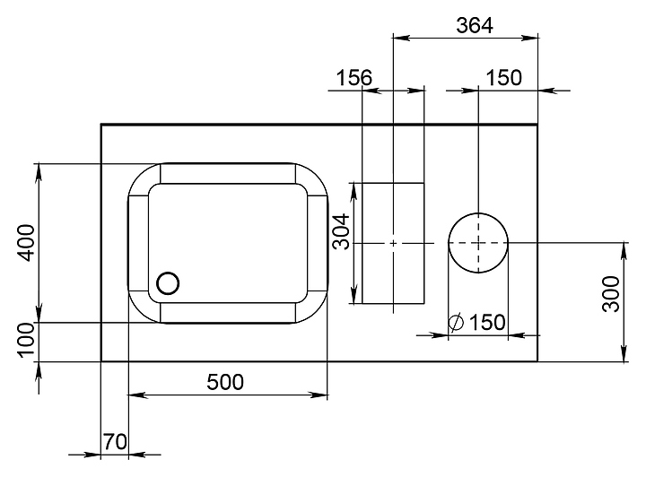 Ванна моечная КОБОР ВМЦФР/1-110/60+ринзер+отверстие для отходов