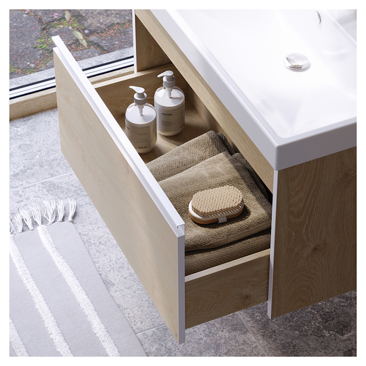Тумба Aqwella Urban Фостер 1000 выполнена в современном стиле и отлично впишется в интерьер любой ванной комнаты. Благодаря подвесной конструкции изделие не занимает много места, что позволяет экономить пространство в небольшой ванной комнате, а также облегчает уборку. Модель оснащена выдвижным ящиком с направляющими скрытого монтажа с функцией плавного скольжения и мягкого закрывания. Корпус и фасад изделия выполены из ЛДСП с покрытием ламинатом, раковина - из керамики. Тумба используется вместе с раковиной Kirovit Фостер 100. Смеситель и донный клапан в комплект поставки не входят и приобретаются отдельно. Особенности: