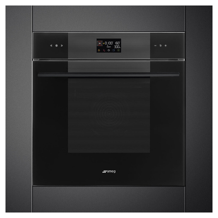 Электрический духовой шкаф SMEG SO6102M2B3 предназначен для приготовления большого ассортимента блюд в домашних условиях. Модель оснащена рабочей камерой GALILEO с верхним и нижним нагревательными элементамии, грилем, расположенными в задней стенке кольцевым нагревателем и вентилятором, магнетроном, 2 съемными стойками с 5 уровнями направляющих для противней, откидной дверью со смотровым окном и длинной горизонтальной рукояткой, панелью управления с сенсорной клавиатурой и жидкокристаллическим дисплеем (EVO Screen). Корпус выполнен из высококачественной стали, фронт черного цвета с полным глянцевым тонированным остеклением без винтового крепежа, направляющие с хромированным покрытием, стандартный противень – из термостойкого боросиликатного стекла пирекса, глубокий противень – из эмалированного металла.