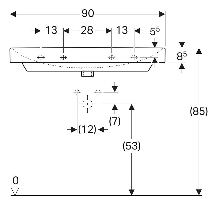 Раковина Geberit Smyle Square 90х48 см без отверстия для смесителя