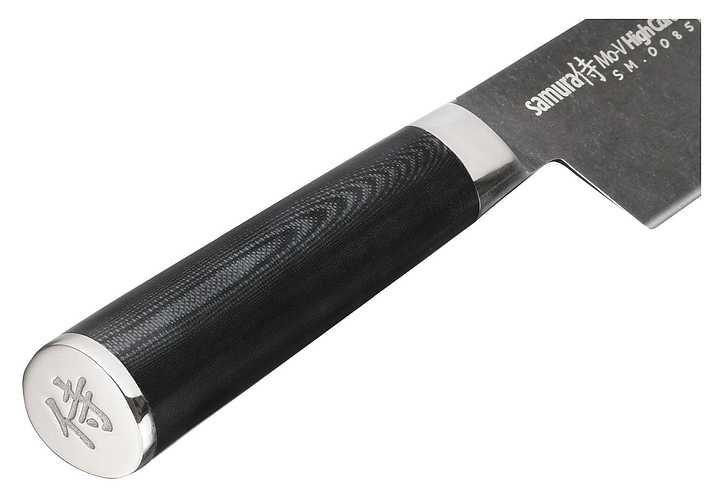 Японский кухонный нож Samura Mo-V Stonewash SM-0085B предназначен для нарезки различных продуктов на предприятиях общественного питания и торговли, в частных домах и квартирах. Прочный клинок не только успешно противостоит ржавлению, но и способен длительное время сохранять безупречность режущей кромки. Лезвие выполнено из коррозионно-стойкой однослойной стали AUS-8 и имеет матовую грубую поверхность благодаря обработке методом галтовки, ручка - из стеклоткани G-10. Особенности: