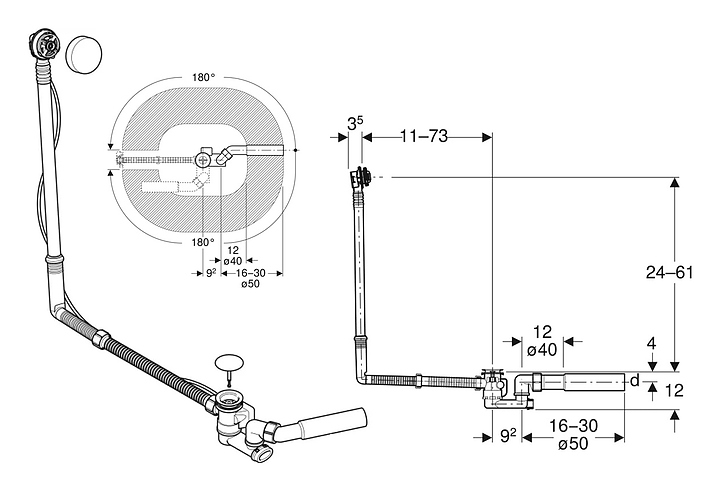Слив-перелив Geberit 150.525.21.6 предназначен для установки с ваннами больших размеров или душевых поддонов, изготовленных из чугуна, стали или акрила с диаметром сливного отверстия 52 мм. Изделие выполнено из пластика. Комплектация:
