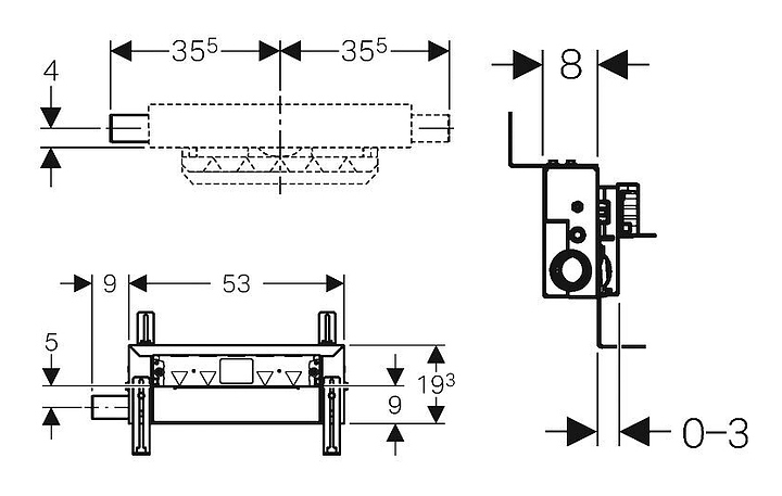 Инсталляция Geberit Kombifix 457.534.00.1 предназначена для душевой системы с водоотводом в стене. В комплект поставки входят соединительный патрубок из ПНД, ø 50 мм, крышка защитного короба с встроенной входной пластиной и крепежные элементы. Особенности: