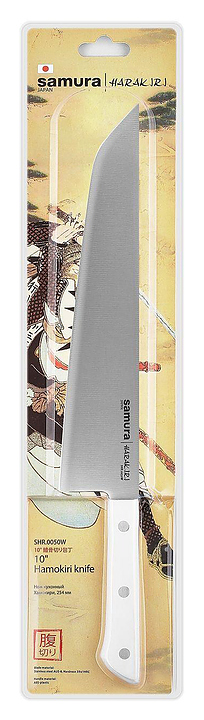 Японский кухонный нож Samura Harakiri SHR-0050W предназначен для филигранной нарезки различных продуктов на предприятиях общественного питания и торговли, в частных домах и квартирах. Лезвие выполнено из коррозионно-стойкой однослойной стали AUS-8, ручка - из ABS-пластика. Особенности: