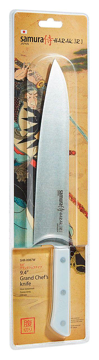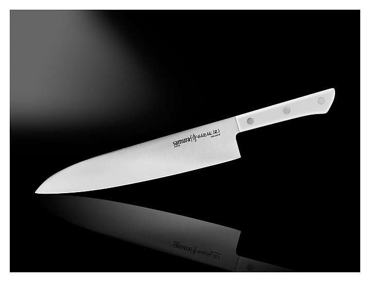 Японский кухонный нож Samura Harakiri SHR-0087W предназначен для нарезки различных продуктов на предприятиях общественного питания и торговли, в частных домах и квартирах. Шеф-нож имеет широкие функциональные возможности. Лезвие выполнено из коррозионно-стойкой однослойной стали AUS-8, ручка - из ABS-пластика. Особенности: