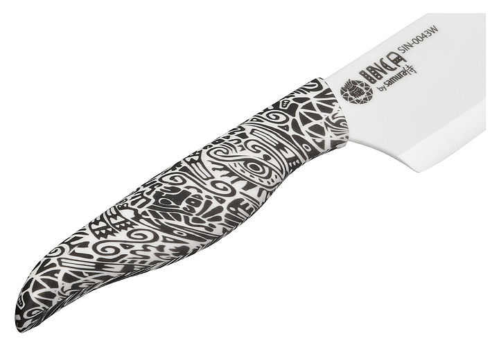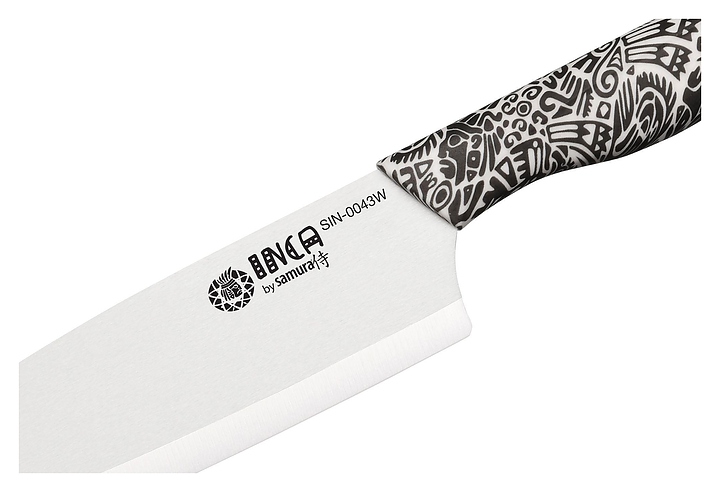 Японский кухонный нож Samura Inca SIN-0043W для мелкой шинковки, нарезки и крошения овощей и зелени на предприятиях общественного питания и торговли, в частных домах и квартирах. Лезвие выполнено из циркониевой керамики, ручка - из ABS-пластика с soft-touch покрытием. Особенности: