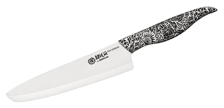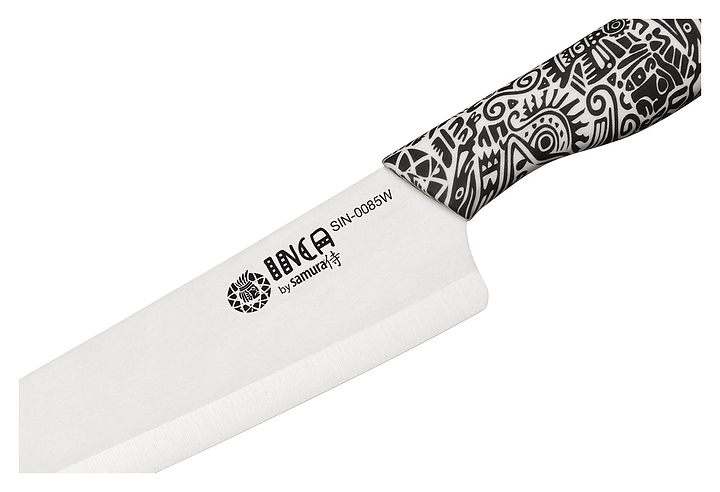 Японский кухонный нож Samura Inca SIN-0085W для мелкой шинковки, нарезки и крошения овощей и зелени на предприятиях общественного питания и торговли, в частных домах и квартирах. Лезвие выполнено из циркониевой керамики, ручка - из ABS-пластика с soft-touch покрытием. Особенности: