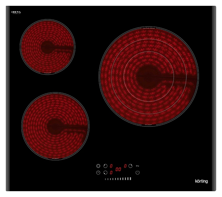 Электрическая варочная панель Korting HK 6351 B3 предназначена для приготовления в специальной наплитной посуде большого спектра блюд в домашних условиях. Модель оснащена сенсорной панелью управления Slider Touch Control, трехконтурной зоной расширения, 3 высокоэффективными конфорками, электронным таймером и кабелем питания. Рабочая поверхность выполнена из стеклокерамики, устойчивой к температурным изменениям. В комплект поставки входит самоклеящаяся термоизоляционная лента для установки по периметру выреза варочной панели. Особенности:
