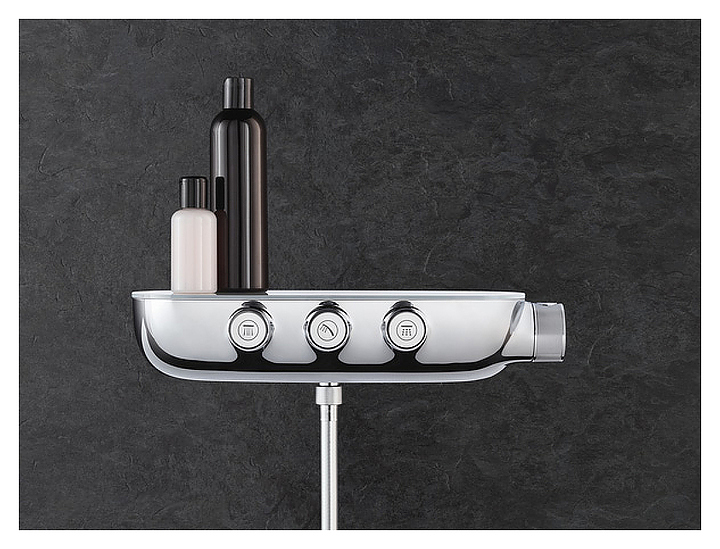 Душевой комплект Grohe Rainshower SmartControl 360 26443000 предназначен для использования в ванных помещениях. Модель оснащена круглой ручной лейкой и овальным верхним душем. Комплект оснащен форсунками SpeedClean против известковых отложений, функцией против перекручивания шланга, а технология CoolTouch полностью исключает вероятность ожога о внешнюю поверхность смесителя. Внутренний охлаждающий канал гарантирует продолжительный срок службы. Изделие выполнено из латуни, которая отличается прочностью, долговечностью и устойчивостью к перепадам температур. В комплект поставки входят термостат, верхний душ, ручной душ, держатель ручного душа и шланг. Встраиваемая часть в комплект поставки не входит. Особенности: