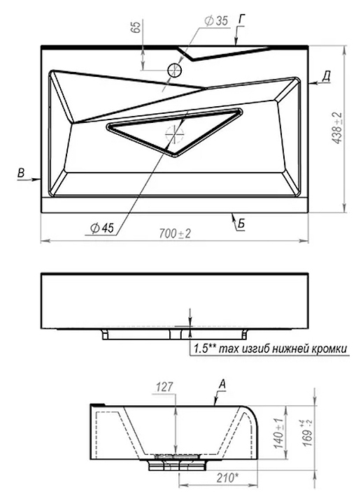 Раковина Andrea Lambo 70 70х44 см, белая