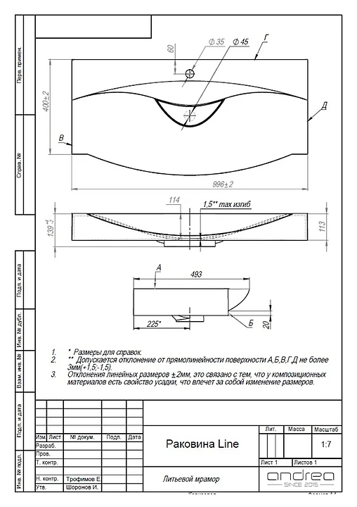 Раковина Andrea Line 100 99,6х40 см, белая